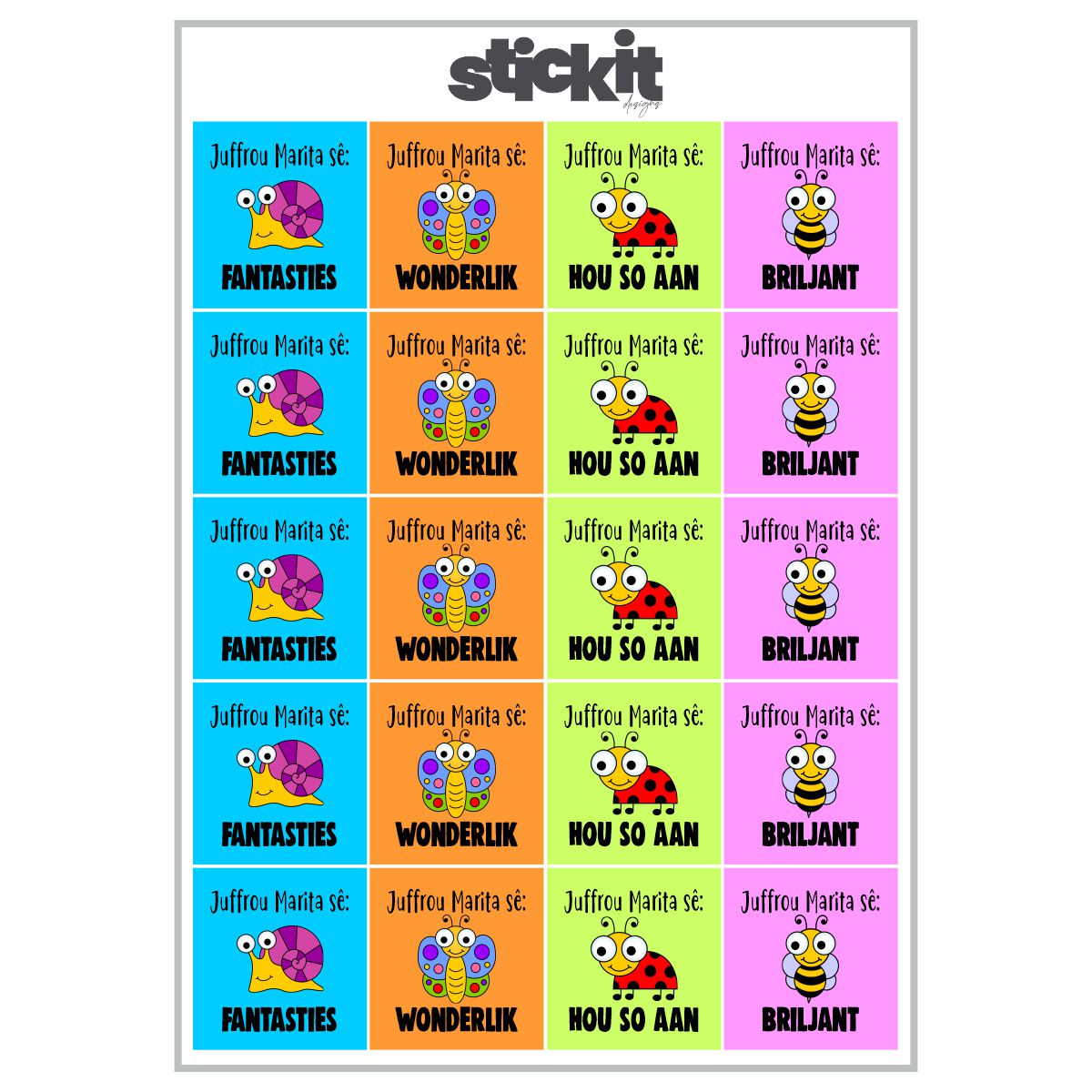 This design includes 20 stickers per A5 sheet.